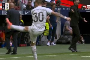 终场前,马斯坦托诺被断球后反抢拉人犯规,往回走的马斯坦托诺被场外来球砸中,随后他一脚爆射将球踢回场边,引发马竞球员和球迷的不满,双方在最后时刻爆发冲突,主裁判也当即向马斯坦托诺出示黄牌予以警告。