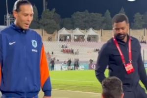 此役范迪克为荷兰踢满全场,帮助球队取胜。《马卡报》社媒晒出视频,范迪克亲切地与场边坐轮椅的球迷合影,并为其签名。