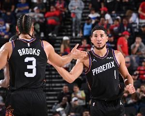 本场比赛,布克出战29分钟,轰下33分5篮板7助攻的数据;狄龙·布鲁克斯出场28分钟拿下32分1篮板1抢断。
