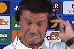 吓成表情包😨发布会耳机突然发出杂音,国米主帅齐沃被吓一跳